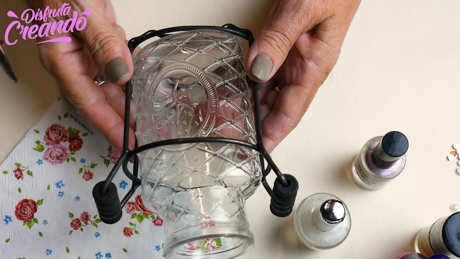 Estoy partiendo de éstos frasquitos de vidrio que compré en el supermercado, que vienen con una base de alambre que tiene 2 asas.