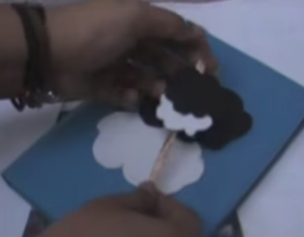 Dos nubes mas pequeñas y la pegamos en la cinta, para formar el separador de libros.