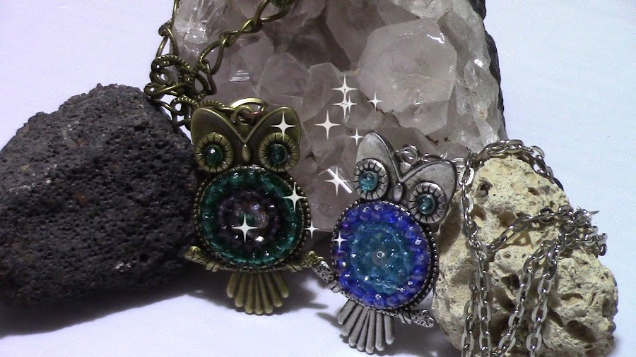 En mi caso he elegido éstos buhitos tan graciosos como colgante, cuya barriguita está lista para rellenar, pero no me apetecía ponerle el típico cabuchón ya que conlleva tener otros materiales y encarece mas el trabajo, de la manera que lo hago sale muchísimo mas económico y el resultado es muy lindo.