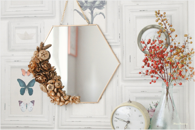 Hoy te traigo un DIY muy sencillo de hacer y que tiene un resultado muy aparente: decorar un espejo con frutos del otoño, pintados con pintura en spray: