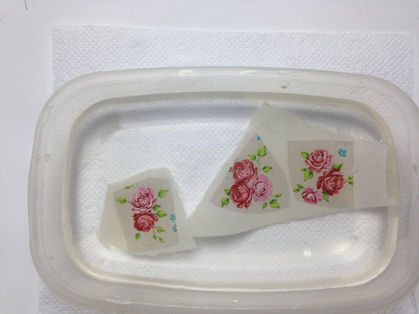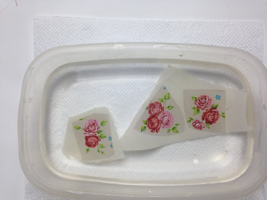 Prepare trocitos de servilleta, con las 3 capas y con una sola capa, aplique la técnica del entelado, lo deje secar y lo planche para sumergirlo en agua para ver si es lavable.