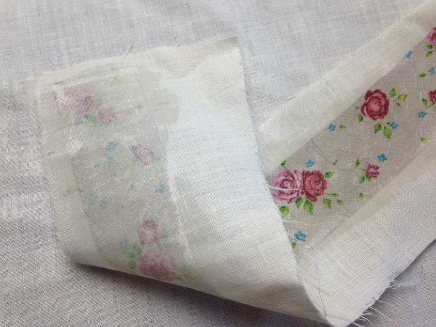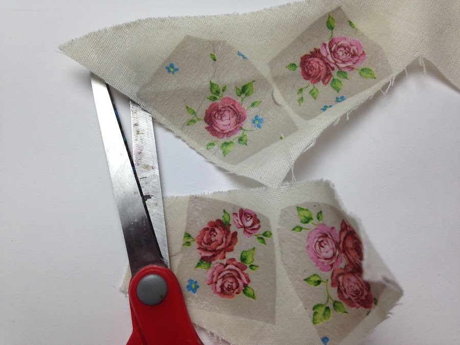 Para realizar el entelado elegir la parte de la servilleta que se quiere usar y recortarla. Luego se procede como se explica en el tutorial: