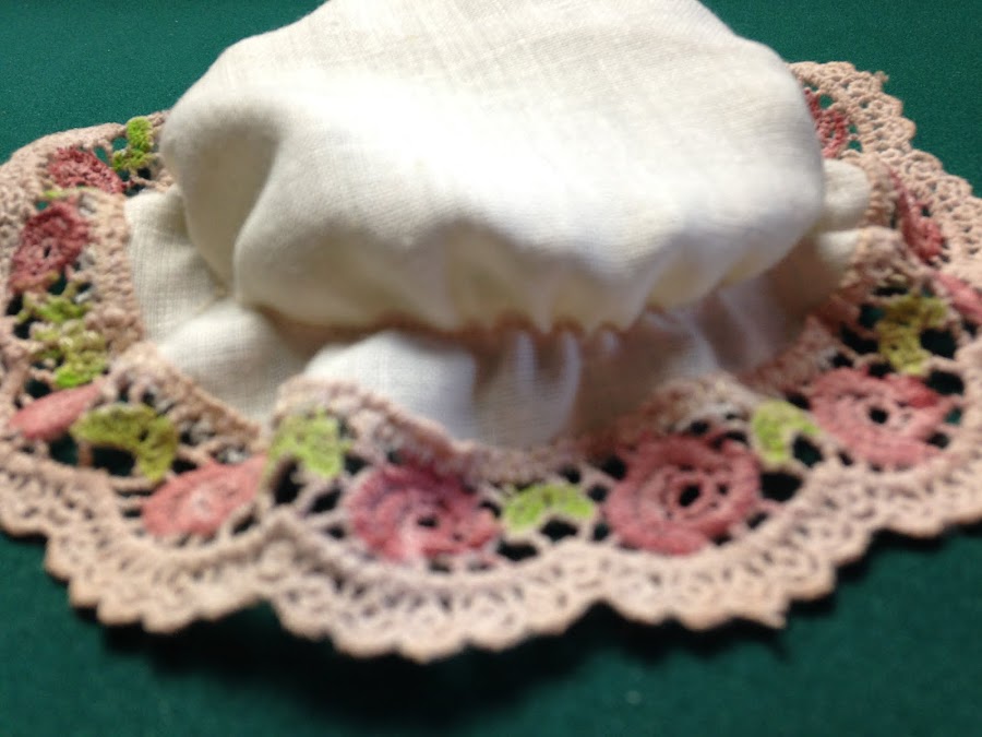 Luego seca la planché y con tela de hilo de algodón (puede ser cualquier tela) hice la cofia para cubrir la tapa. El tutorial de como hacer cofias lo puedes ver aquí:
