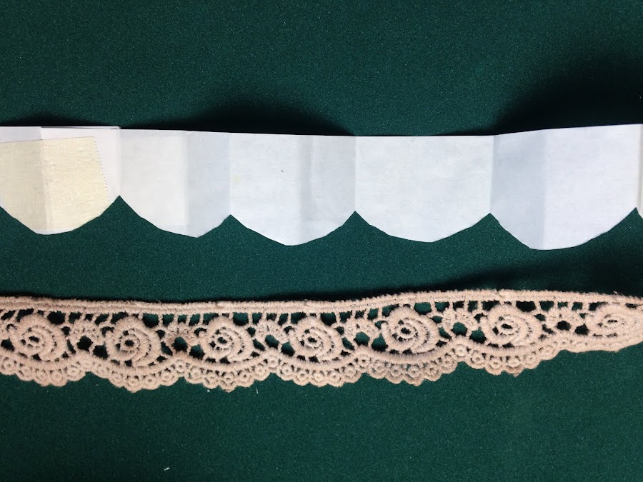 Para comenzar a bordar la puntilla sobre el frasco mido el diámetro del mismo y lo divido en la cantidad de ondas que de, de manera pareja.