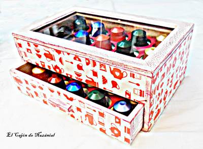 He elegido el mismo papel que el de la caja para cápsulas de café para tener mi conjunto, ya sólo me falta la bandeja, pronto te la mostraré.