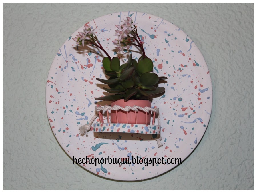 Un trozo de cuerda atada de clavo a clavo hice una plataforma para una planta, aunque alguien me dijo que parecía un balcón. Puede que algo de razón lleve.