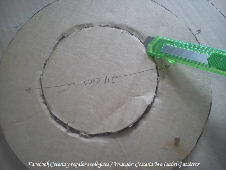Con un cutter o exacto, repasamos sobre este círculo hasta que logremos cortarlo...