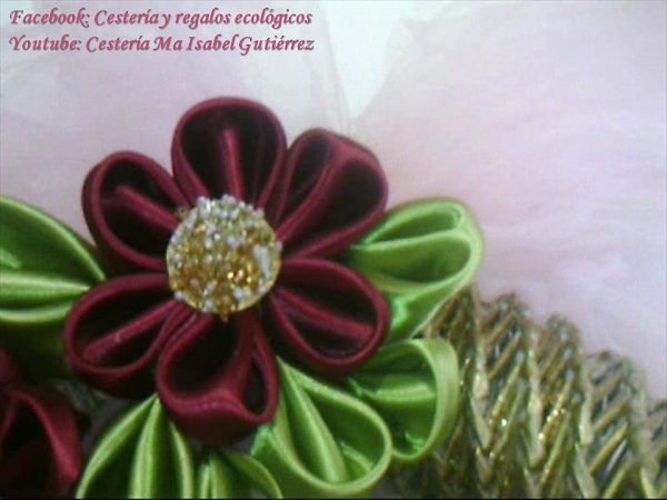 Pegamos con silicón las flores empezando por la parte de arriba, también vamos acomodando los pétalos verdes...