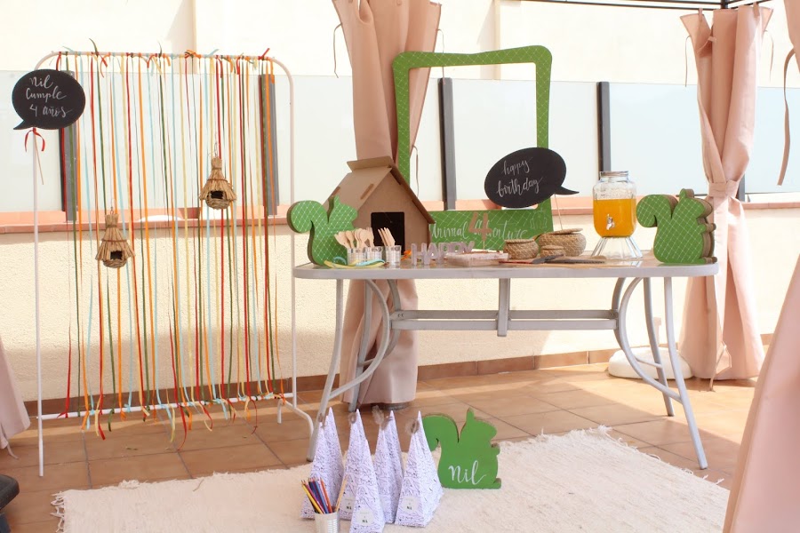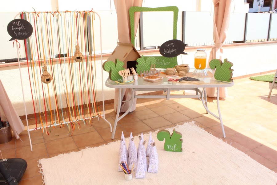 Además de personalizar las cajas también podéis encontrar todo lo necesario para decorar vuestra fiesta, yo encontré unas ardillas que son puro amor, una casita de campo y un photocall genial.