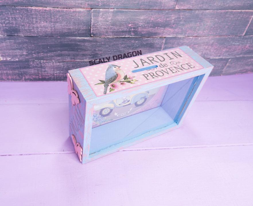 En esta ocasión vamos a decorar una alcancía o hucha rectangular de madera en tono natural.Lo primero que aremos es retirar la tapadera trasera y el plástico protector.