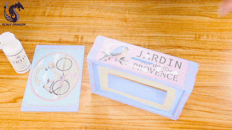 En lo que se seca la pintura procedemos a seleccionar el papel para decoupage, en este caso usare este de la marca Dayka.