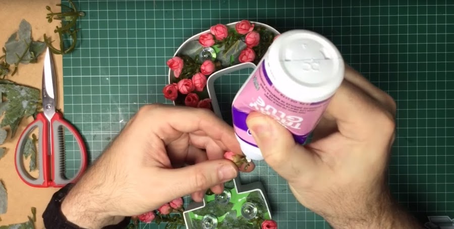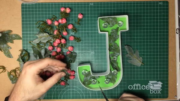 Superfácil, rápido y diferente. Las rosas rosadas destacan con la letra blanca. Y lo mejor es que podemos retirar la cartulina verde con las hojas y flores pegadas y variar la decoración!!!!