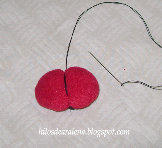 Rellenamos con un poquito de vellón sintético . Llenito pero blandito, no apretado.