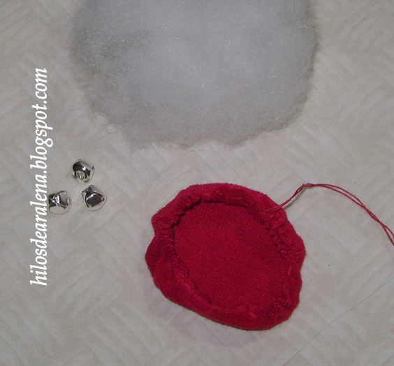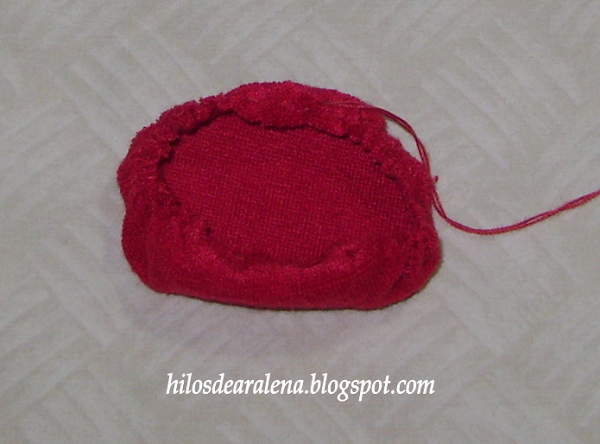 Un círculo de 4 ó 5 cm. Fruncimos , cerramos .