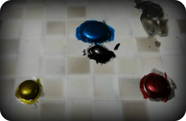 Una vez secas , le he dado una capa de pintura vitral , y he conseguido un particular color metálico , similar al de los coches.