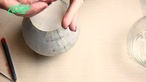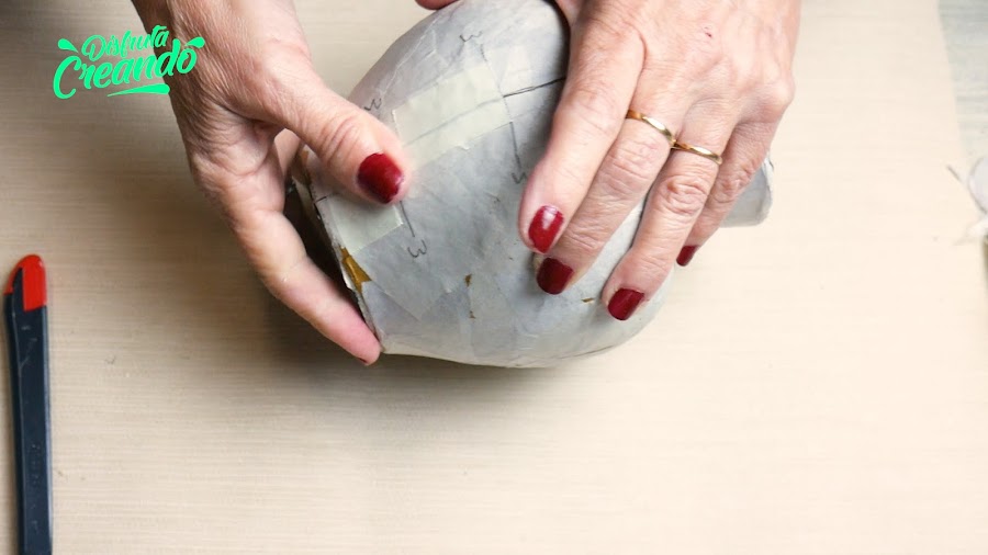 Uno las piezas con cinta de papel colocadas en distintas posiciones, asegurándome bien la base y la boca.