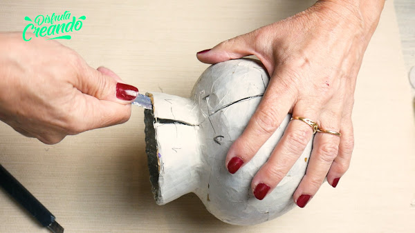 Luego un cutter bien afilado y comienzo a desplazarlo hacia abajo , varias veces lo paso por el mismo lado, la zona del cuello es lo que más trabajo da por eso muevo la pieza en distintas direcciones para ayudarme.