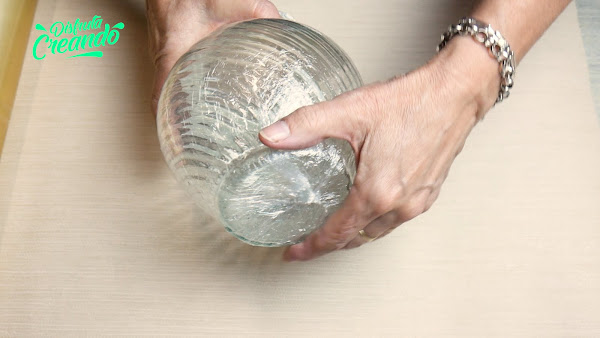 Cuando este tomó bien la forma acomodo por encima el film dentro de la boca del recipiente.