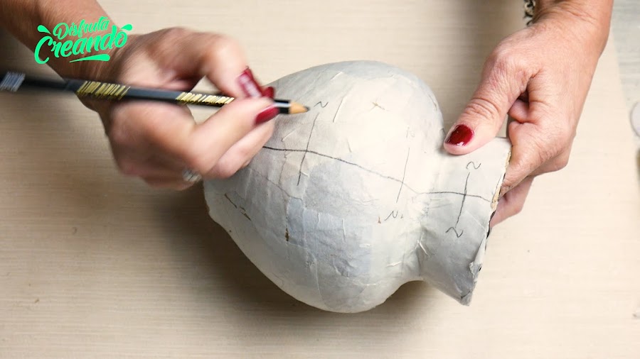 Como mi molde tiene mucha forma le voy a realizar 3 cortes, los marco a lo largo con un lápiz para guiarme y a su vez realizo marcas horizontales que me servirán de guía para cuando deba hacer la unión de las piezas.