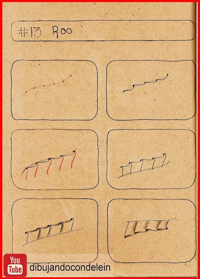 En ésta oportunidad les presento un lindo y sencillo diseño zentangle, en realidad donde tome la idea para éste diseño, no estaba el nombre del mismo, así que decidí ponerle por nombre Roo,este diseño nos ayuda a brindarle a nuestro dibujo un poco de fluidez dado por las lineas curvas que en este estampado se utilizan.