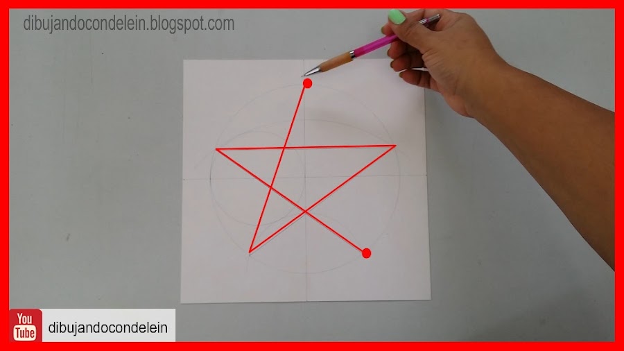 Y ya con todas esas lineas en su lugar vamos a ubicar los 5 puntos necesarios para dibujar la estrella, que por cierto son los mismos puntos que se necesitan para hacer un pentágono
