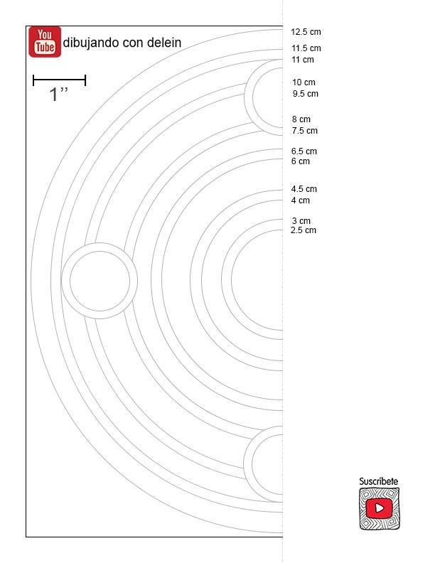 Las medidas para este mandala son: (las medidas se toman desde el centro hacia afuera)