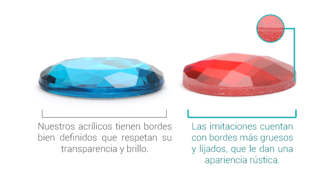 2. Los acrílicos de baja calidad tienen bordes lijados y rústicos, gracias a esto su forma no es totalmente simétrica. Por el contrarío, los acrílicos de buena calidad, como los nuestros, tienen bordes bien logrados y una simetría perfecta. Una verdadera apología al cristal.