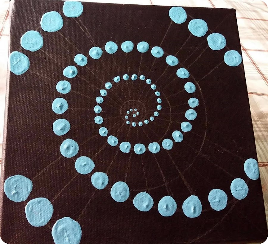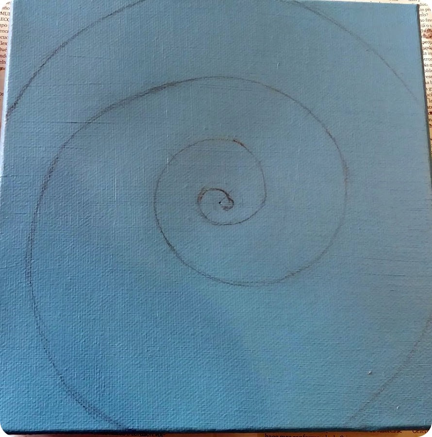 Diseño la espiral con lápiz, y la marco con puntos de menos a mayor empezando por el centro .