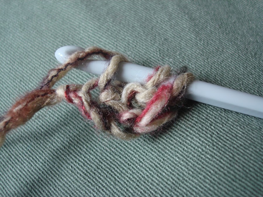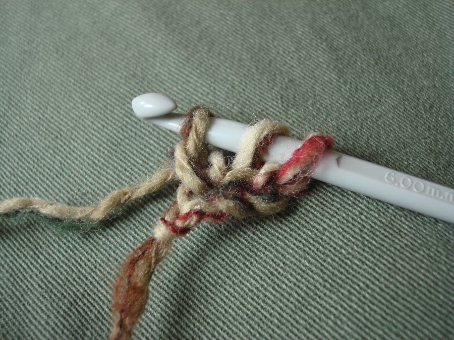 4.- Cogemos hebra y cerramos como hacemos los puntos altos o varetas, es decir, cerramos las dos primeras lazadas.