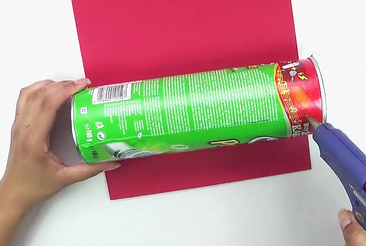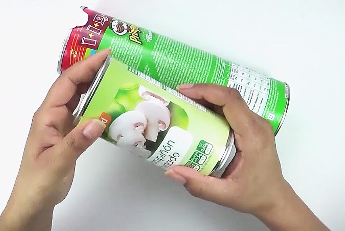Elige la lata según el regalo que quieras hacer, yo usé en envase de Pringles, preferiblemente que tenga abre fácil, para facilitar su apertura.