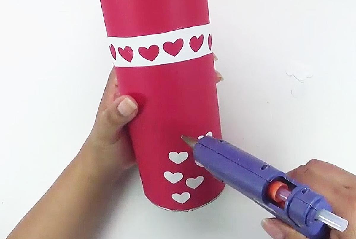 Forra la parte exterior de la lata con el material que prefieras, y decórala a tu gusto. Puedes personalizar y añadir la decoración según la ocasión.