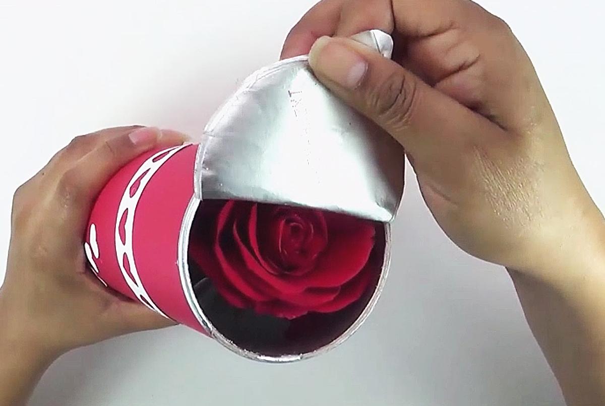Listo, ya tienes una rosa enlatada, la persona a quien se lo regales podrá abrir la lata y encontrar su regalo.