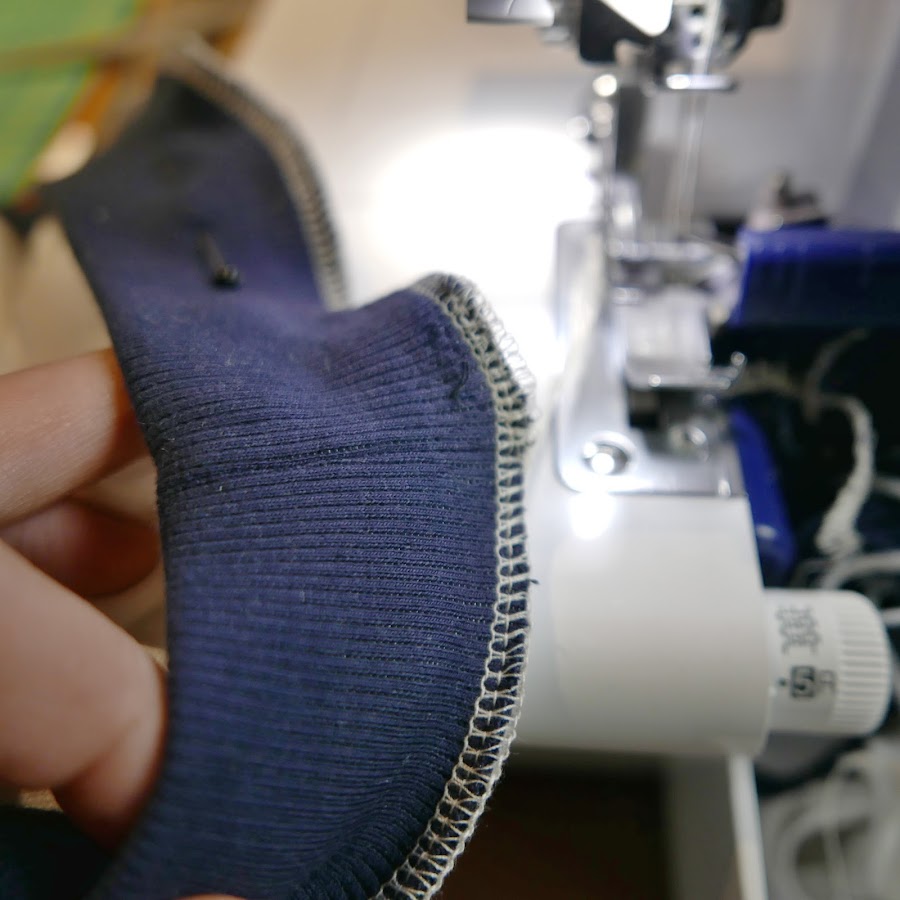 17. Coseremos con máquina de coser o remalladora el elástico al resto del jersey.