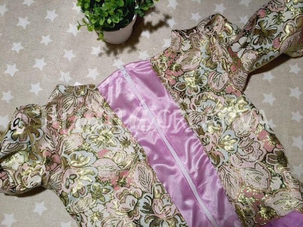 Para solucionarlo compre tela en los tonos del vestido y lo añadí a ambos lados de la cremallera.