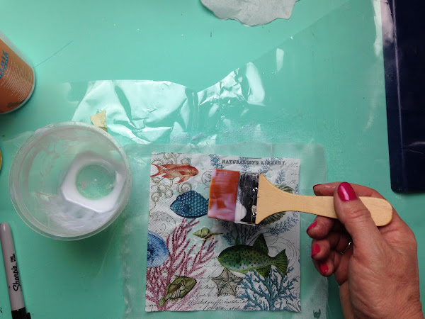 Pegamento, debo aclarar que existen pegamentos específicos para esta tarea, pero en este tutorial yo use pegamentos más comunes que solemos tener. Barniz al agua y Mod Podge.
