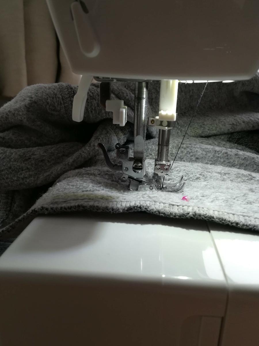 Cose firmemente. Yo hago dos líneas en la función – – – – . Si el primer cosido fue bueno, ya lo aprovecho y sólo añado uno más. Finalmente, para que la tela no se deshaga o se deshilache, coso una línea en la función ^^^^.