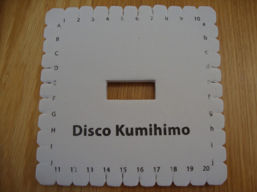 Existen dos modelos, el disco redondo y el cuadrado. En realidad con el redondo se podrían hacer todos los modelos (de hecho los kumihimos originales son platos redondos sin muescas ni nada, pero para eso ya hay que tener mucho nivel...), pero tener los dos facilita el aprendizaje y poder copiar diferentes patrones siguiendo tutoriales.
