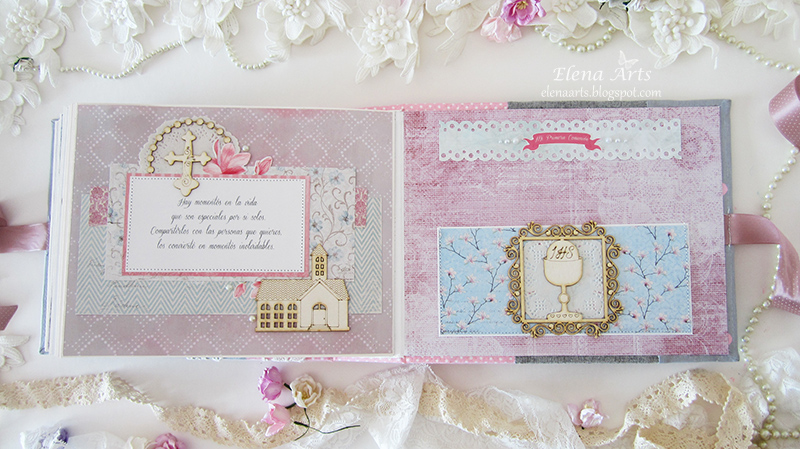 A partir de aquí empiezan las páginas para fotos, En total habrán unas 10 fotos en horizontal, adornadas con motivos de Comunión y muchas flores. :)