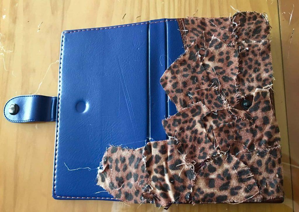 Hoy he aprovechado los últimos trocitos para decorar con la misma técnica una agenda pequeña que llevo casi siempre en el bolso.