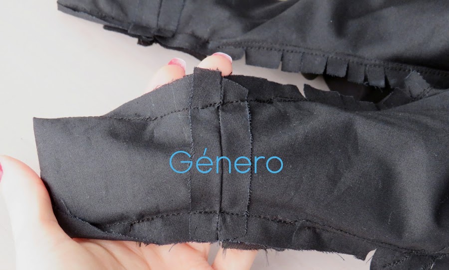 Cuidado con parte del tirante que puedes ver por dentro, no debes de pillarlo con la costura