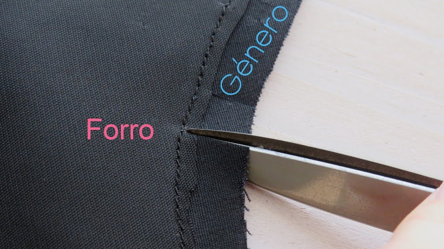 Cortamos el margen de la parte del forro o vista, teniendo en cuenta que esto también lo debes de hacer a partir de los 3 cms