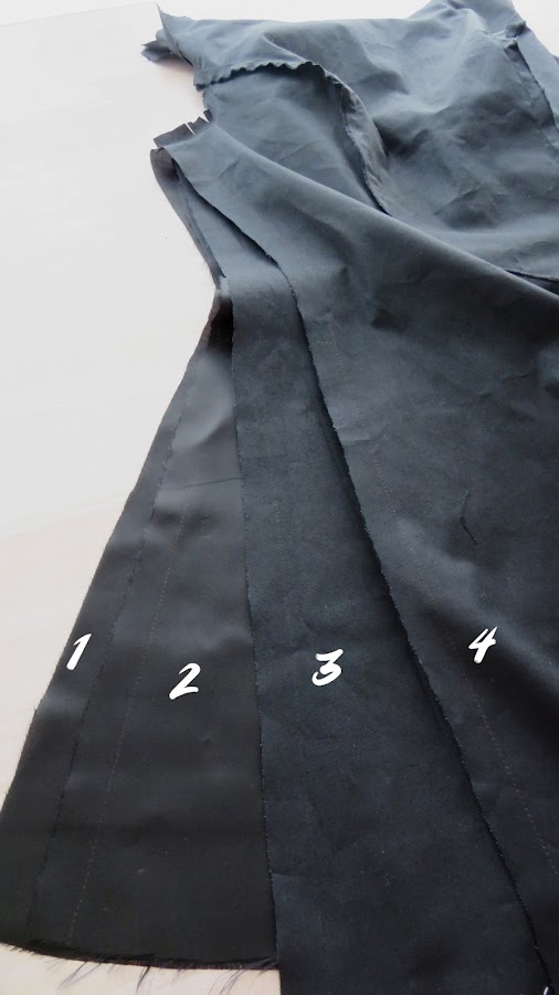 Pieza 4: Estaríamos viendo el revés del delantero del género (por lo que el derecho de esta pieza está viendo al derecho de la espalda, pieza 3)