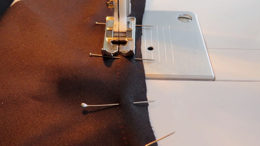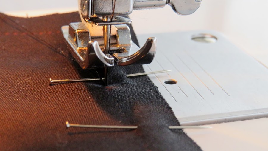 Ponemos alfileres sujetando también los márgenes para asegurarnos que queden abiertos mientras pasamos la costura