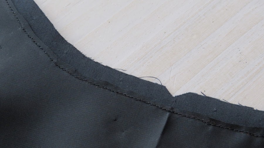 Si quieres mirar antes un tutorial previo para dominar mejor este concepto, visita esta entrada: CÓMO HACER UNA COSTURA DE CARGA PASO A PASO, ya que esas son las costuras que haremos en escote y sisas antes de embolsar.