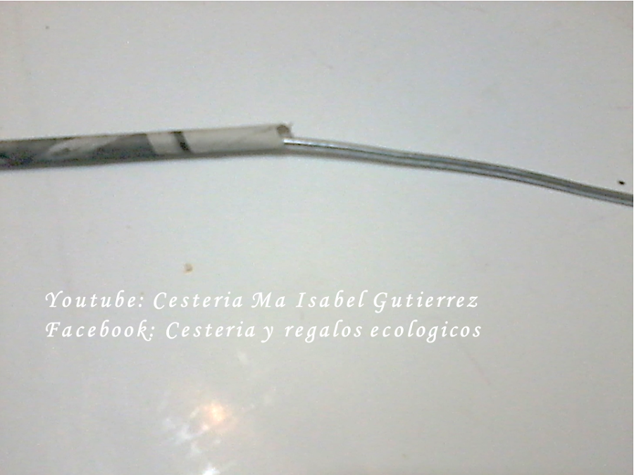 El primer paso es introducir el alambre dentro de la varilla de papel. El calibre o grueso del alambre depende del tipo de vara ornamental que deseas, por ejemplo: para una vara con enrollado ondulado, suave o apretado, podemos usar alambre delgado y muy flexible, del tipo que venden en las tiendas de manualidades. Pero si deseas hacer las varas con cuentas de papel, el alambre tiene que ser mas grueso y duro para que pueda soportar el peso de las cuentas...