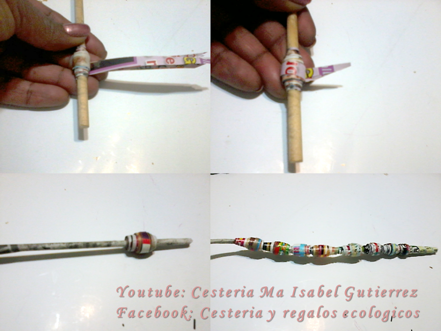 Cuando terminamos de enrollar, vamos poniendo pegamento en las puntas de los seis triangulos y listo !! Ahora, ponemos pegamento en la varilla de papel, sobre el area donde vamos a colocar las cuentas, metemos las cuentas, dejamos secar y listo ! pintamos y barnizamos....