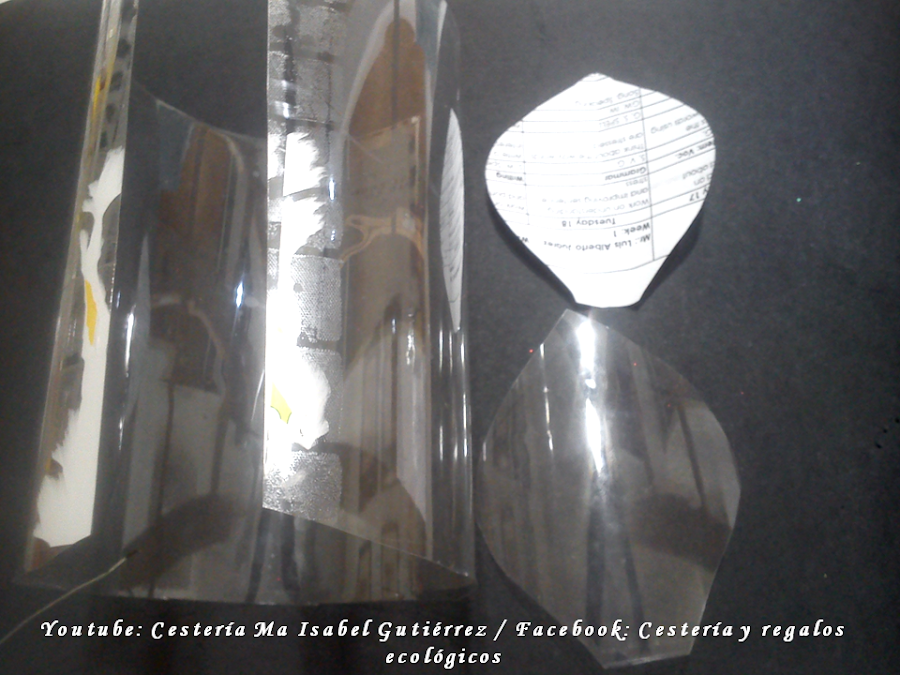En base al molde de papel, cortamos en el plástico tantas piezas como flores deseamos...