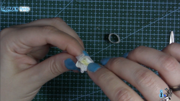 Luego se rodea la base de los pétalos y el resto del tallo con tapé floral verde y listo.