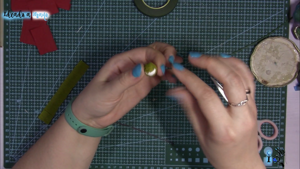 Comenzamos cubriendo la bola con un cuadradito de más o menos 2x2cm de papel crepé verde. No hace falta cubrirla por completo porque la parte de abajo no se va a ver.
