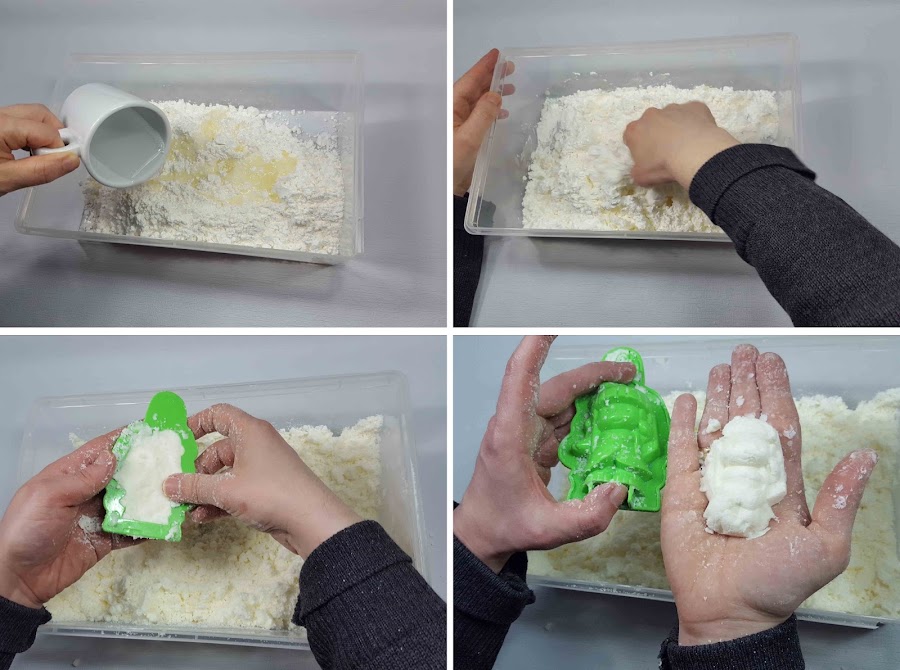 Añadimos 400 gramos de harina de maíz y una taza de aceite corporal de bebe,